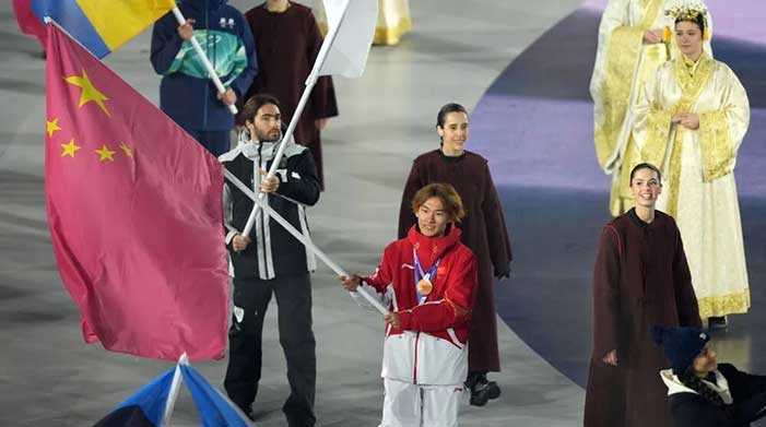 苏翊鸣高举五星红旗入场